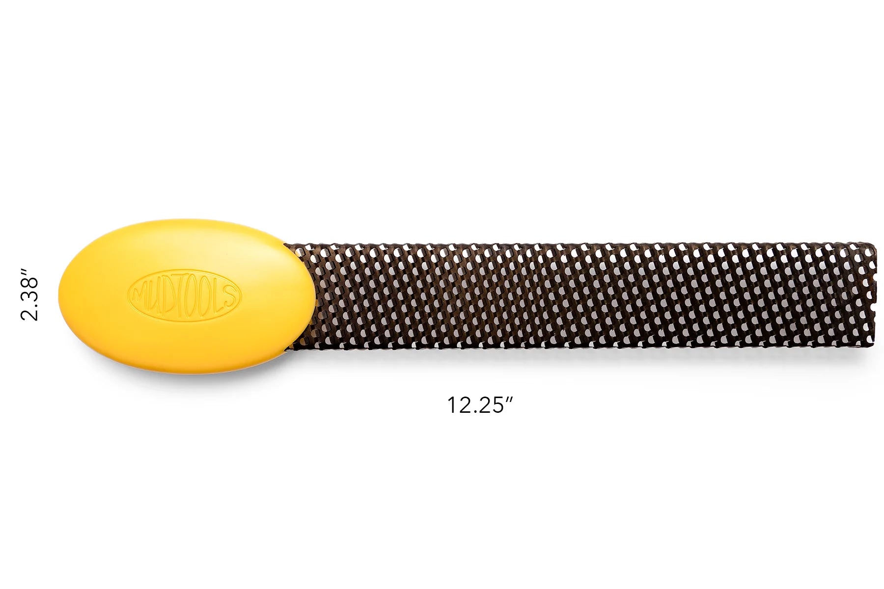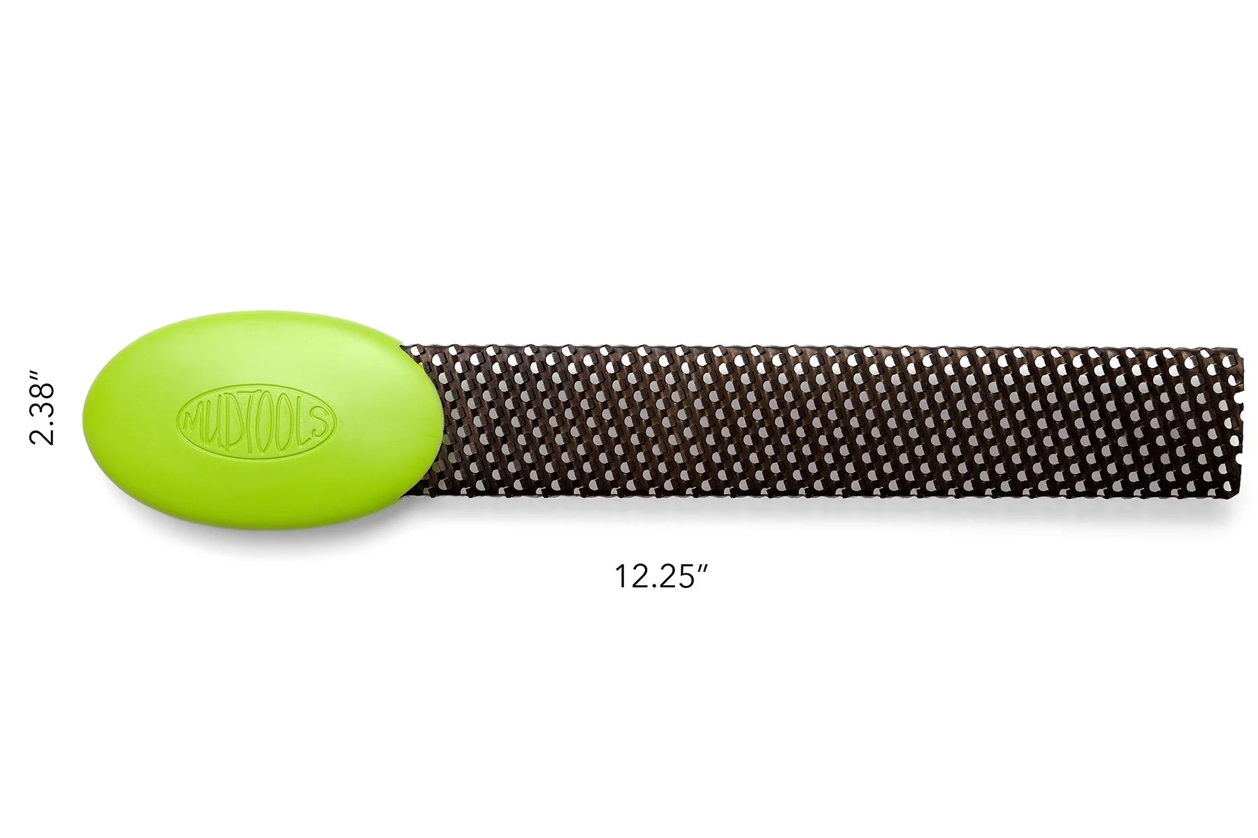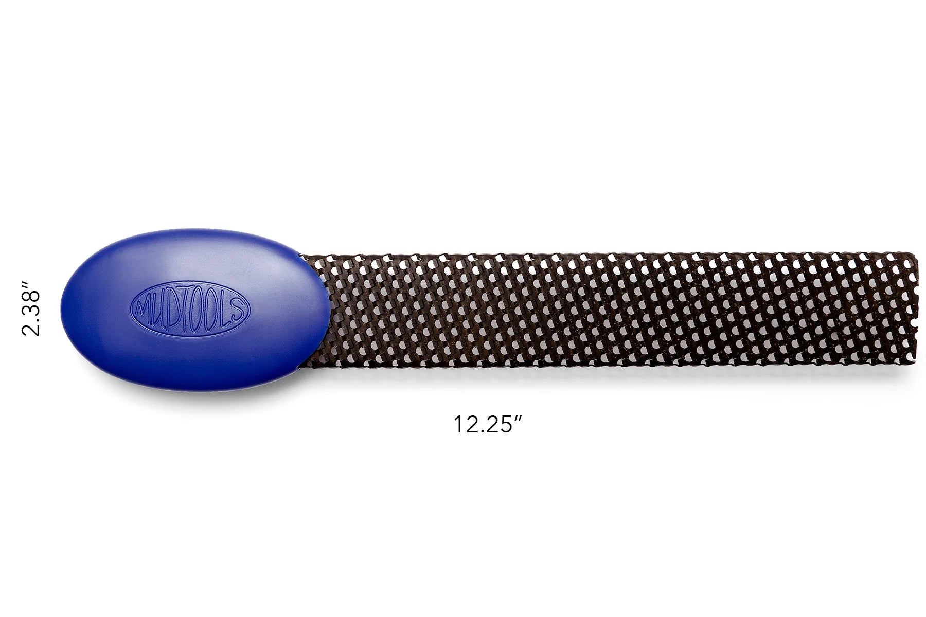 The Mudtools Shredder is an indispensable tool for shaping and carving leather hard clay. For years you could find a tool like this at the hardware store. This type of rasp was originally designed to be used on wood, but clay people, sculptors and auto-body repairmen discovered how well the blade worked on other materials (like clay and auto body filler). The problem was the handle design. The handle would trap clay and get clogged up. Michael designed a new open blade shape as well as a comfortable ergonomic grip. It functions well, doesn’t trap the waste clay in the tool and doesn’t frustrate the user. An added benefit is the tool mark, it leaves a handsome textured surface in the clay.