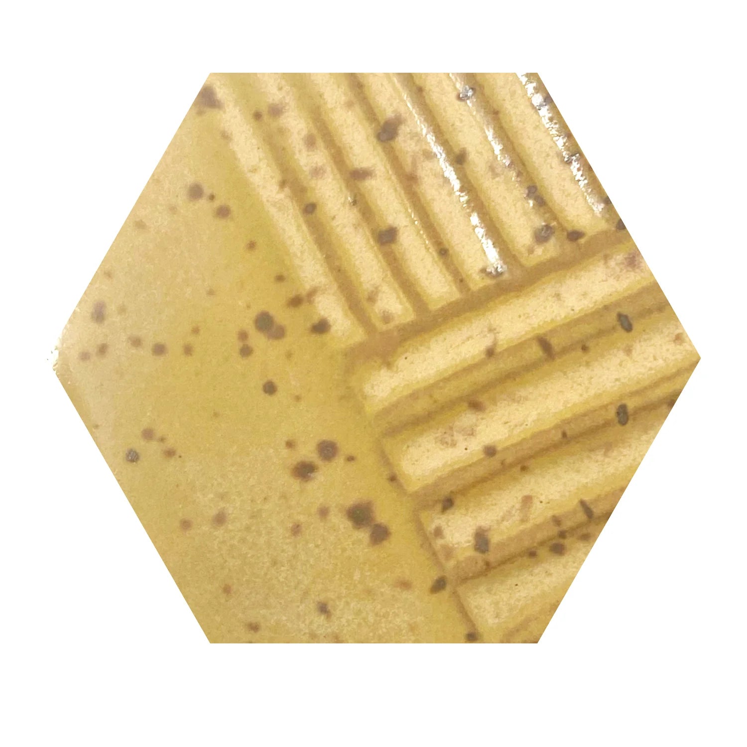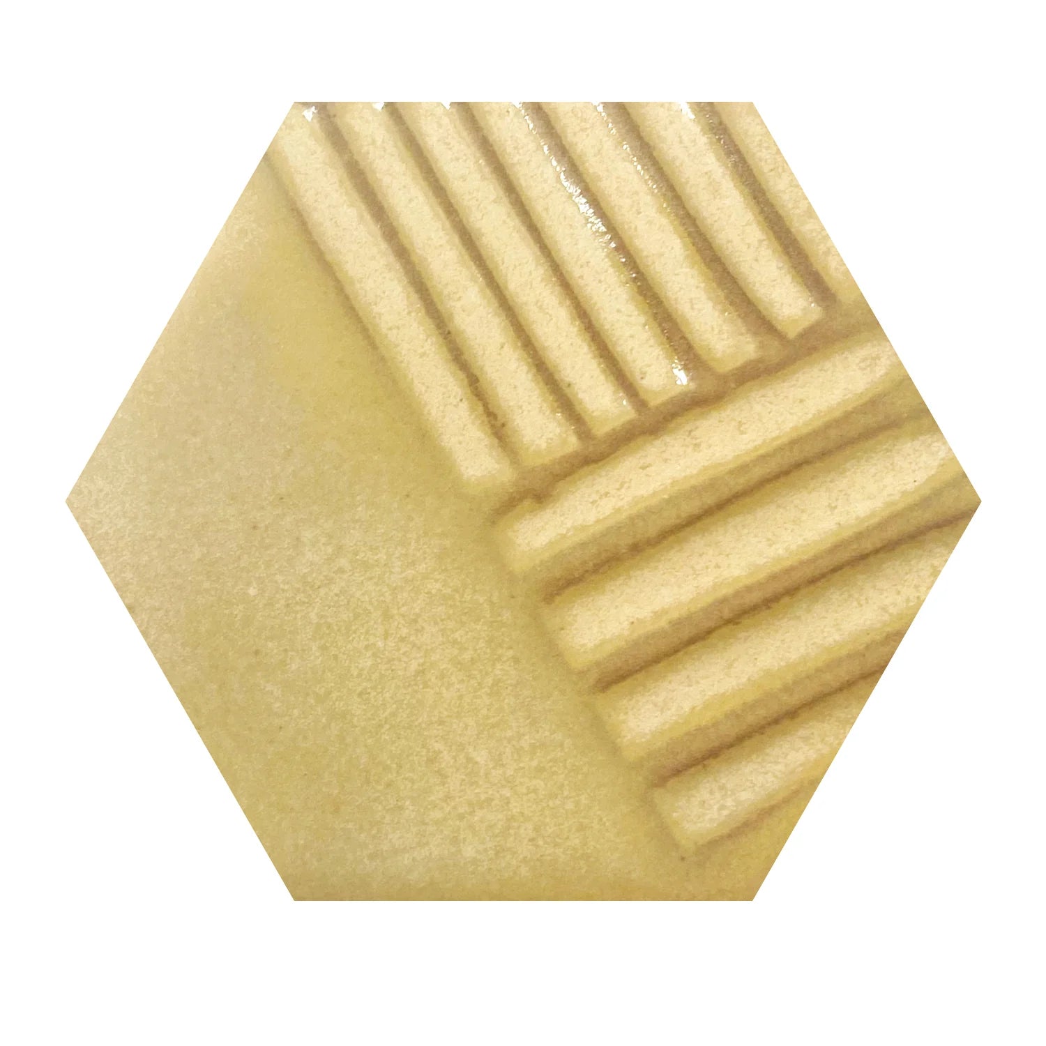 An interesting yellow glaze that gets creamy white accents when thicker. Reformulated for great versatility Layers well. Fire to cone 6.